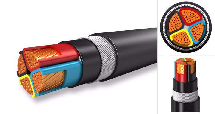 The Alfanar 3×120+70 mm² low voltage power cable is engineered for high-capacity energy transmission and separate grounding in industrial systems. It features three 120 mm² copper conductors and a 70 mm² earth conductor, XLPE insulation for resistance to heat and moisture, black PVC sheath for durability, and Steel Wire Armoring (SWA) for superior mechanical protection. Perfect for large-scale power installations and industrial energy systems.